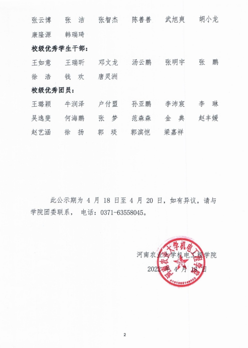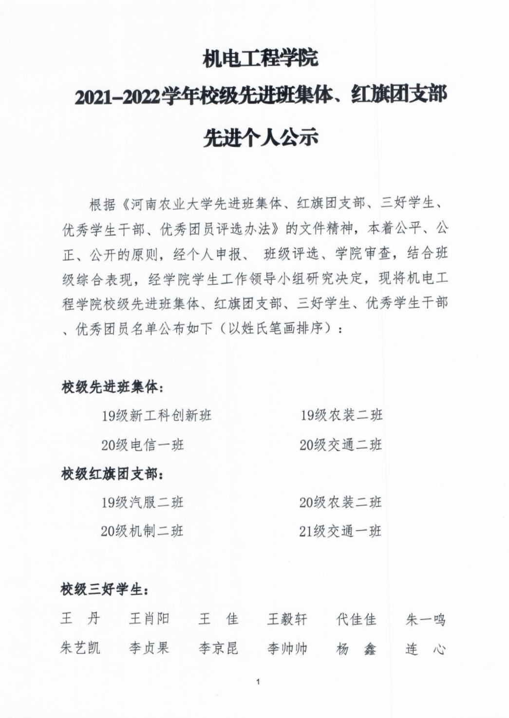 黄网 2021-2022学年校级先进班集体、红旗团支部、先进个人公示