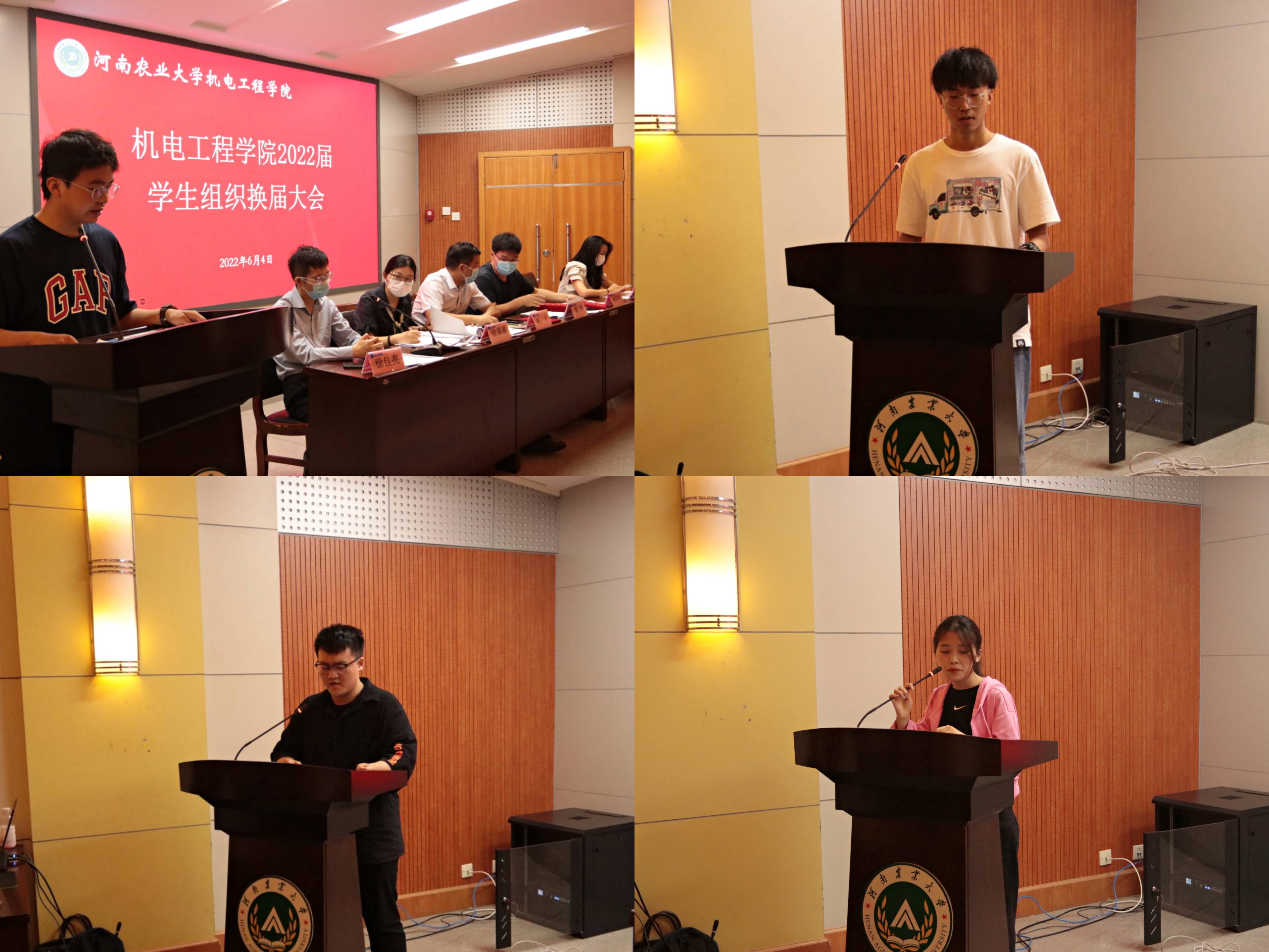 紧接着,2022届各学生组织负责人依次上台进行任职演讲,他们结合自身工作经历,围绕各组织工作开展情况、工作概述、工作成果等方面内容进行任职演讲,并对接下来各组织工作的开展做出规划与设想。随后,他们表示新一届学生干部成员定不会辜负老师的期望和同学们的信任,时刻牢记立德树人、服务同学的初心与使命,以求真、务实的作风对待每一项工作,推动黄网 学生工作再上新台阶。