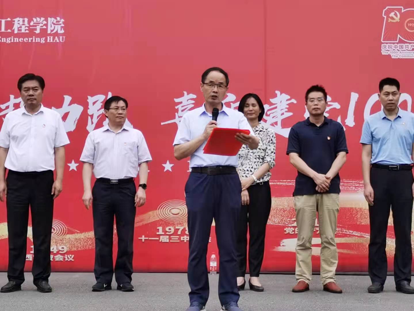 百年奋斗,恰是风华正茂;百人接力,更为扬帆远航。为庆祝中国共产党建党100周年,推动广大师生学党史,知党恩,跟党走,引领广大师生牢记党的宗旨,坚定理想信念,强化党员意识,激发工作热情,更好地发挥共产党员的先锋模范作用和基层党组织的战斗堡垒作用,6月8日,黄网于文化路校区举行“机电百人接力跑,喜迎建党100年”主题党日活动,以百人接力长跑的形式向百年来接续奋斗的共产党人致敬。师生党员代表参加此次活动。