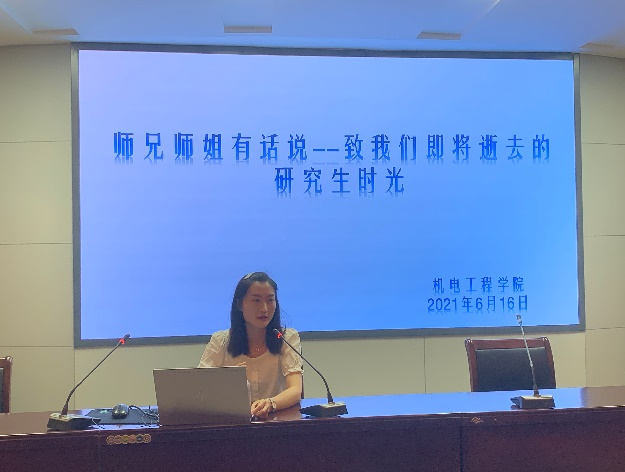 2021届优秀硕士毕业生代表岳田、李冬贤,优秀就业硕士毕业生代表吴亚文、王晨,向20级研究生们分享科研经验、就业心得和人生感悟。