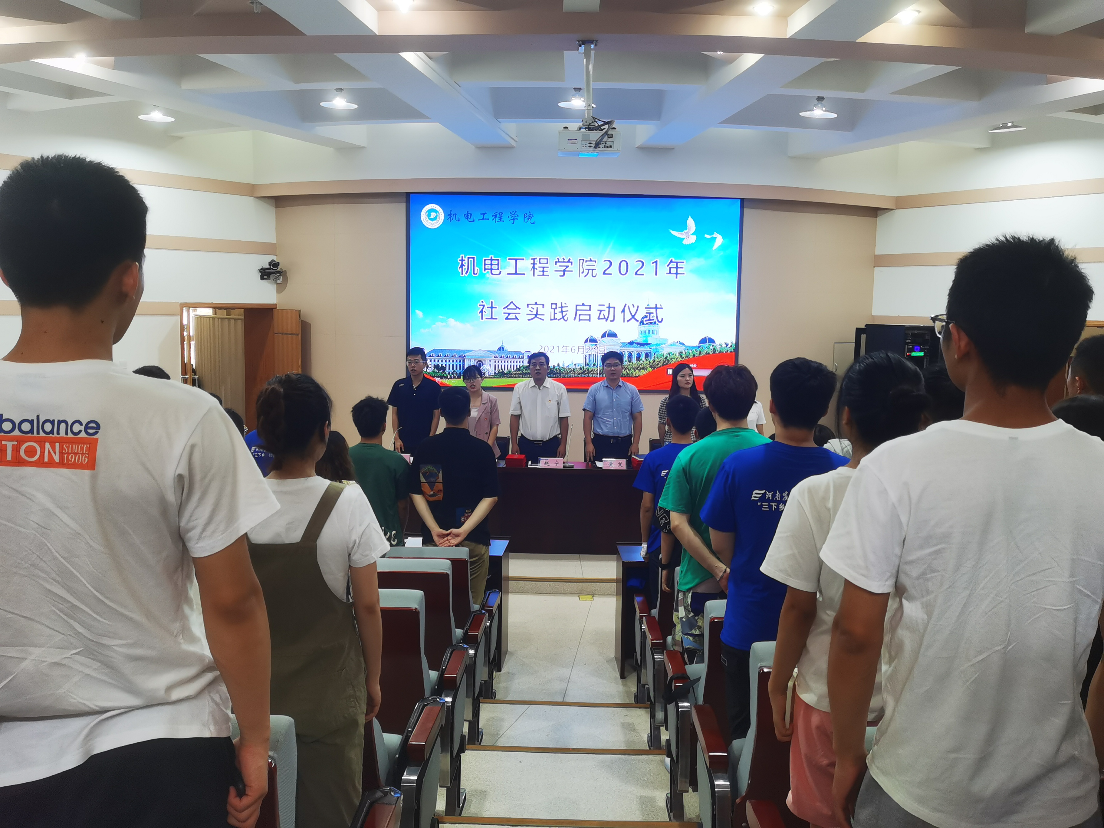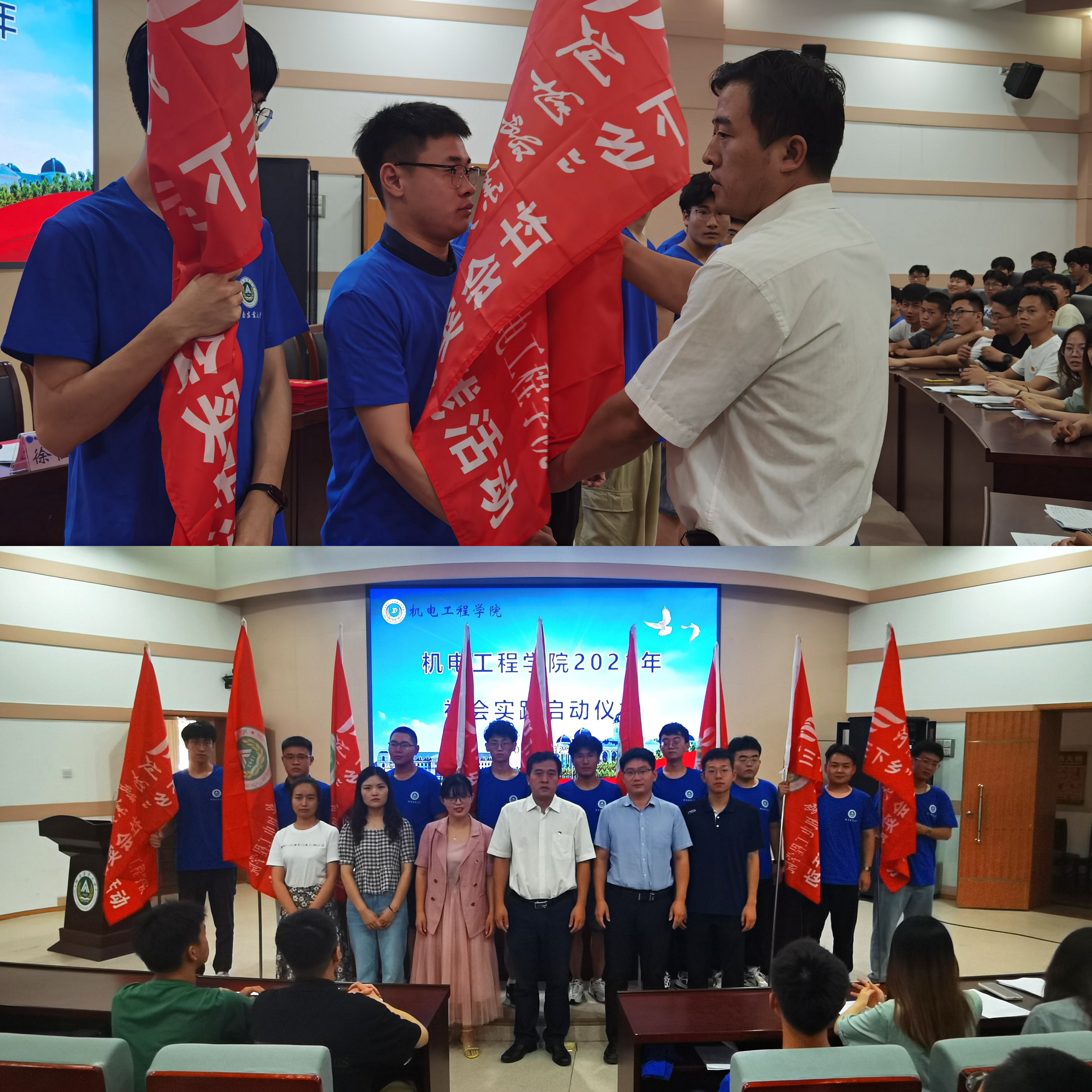 会议伊始,黄笑宣读了《关于开展2021年黄网 暑期“三下乡”社会实践的通知》。紧接着,学生代表赵志勇发言,向同学们说明了“三下乡”活动是一个锻炼自我、服务社会的良好平台,并号召同学们积极投入到社会实践活动中去。随后,赵宁为黄网部分社会实践团队代表授旗并合影留念。