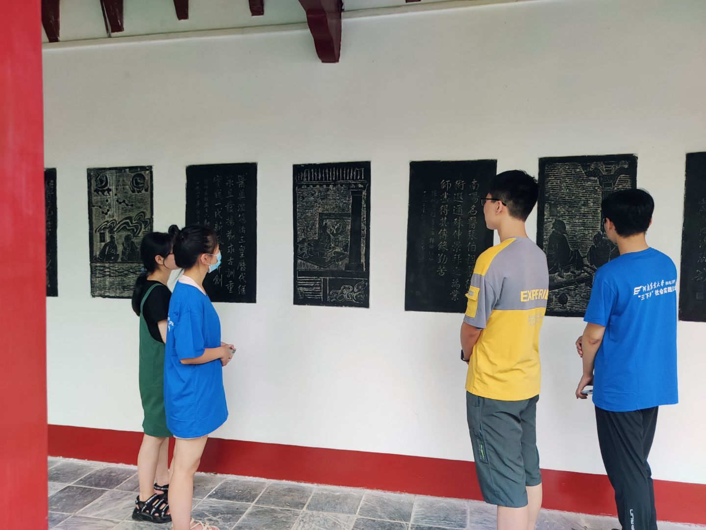 7月3日,在当地居民的指引下,实践队员们顺利抵达南阳市城东温凉河畔。走进医圣祠,首先映入眼帘的是一块巨大的照壁,上面雕刻着由我国名医黄竹斋先生撰写的《医圣张仲景传》,通过对照壁的浏览,实践队员们对医圣张仲景的生平事迹有了更进一步的了解,深刻感受到他对我国中医药事业所做出的伟大贡献。