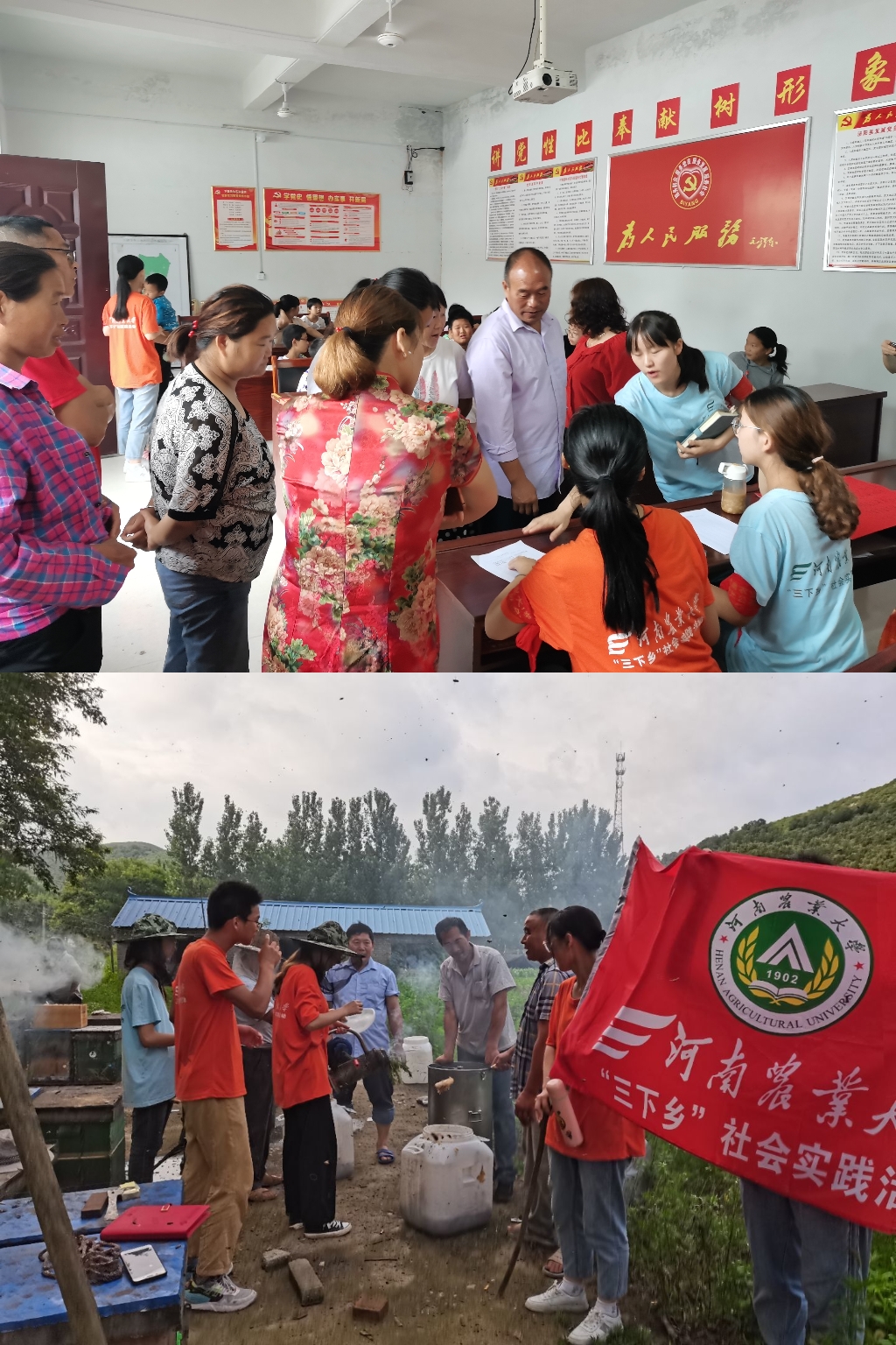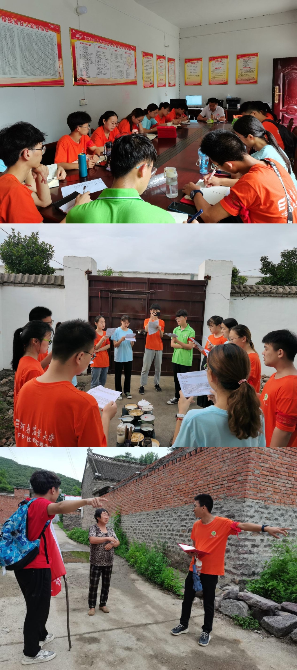 7月6日,泌阳队在队员们的共同努力下,支教组的招生工作正式展开。村民表现出极大的热情,陪伴孩子一起在村委招生处了解支教的内容及形式,报名并填写相关信息,村民们纷纷表示期待孩子们在这里取得收获。调研组队员前往村民劳作的地方进行实地体验,了解到了村民草药采集、食用菌养殖和病虫害等日常工作,使得调研工作取得较大进展。