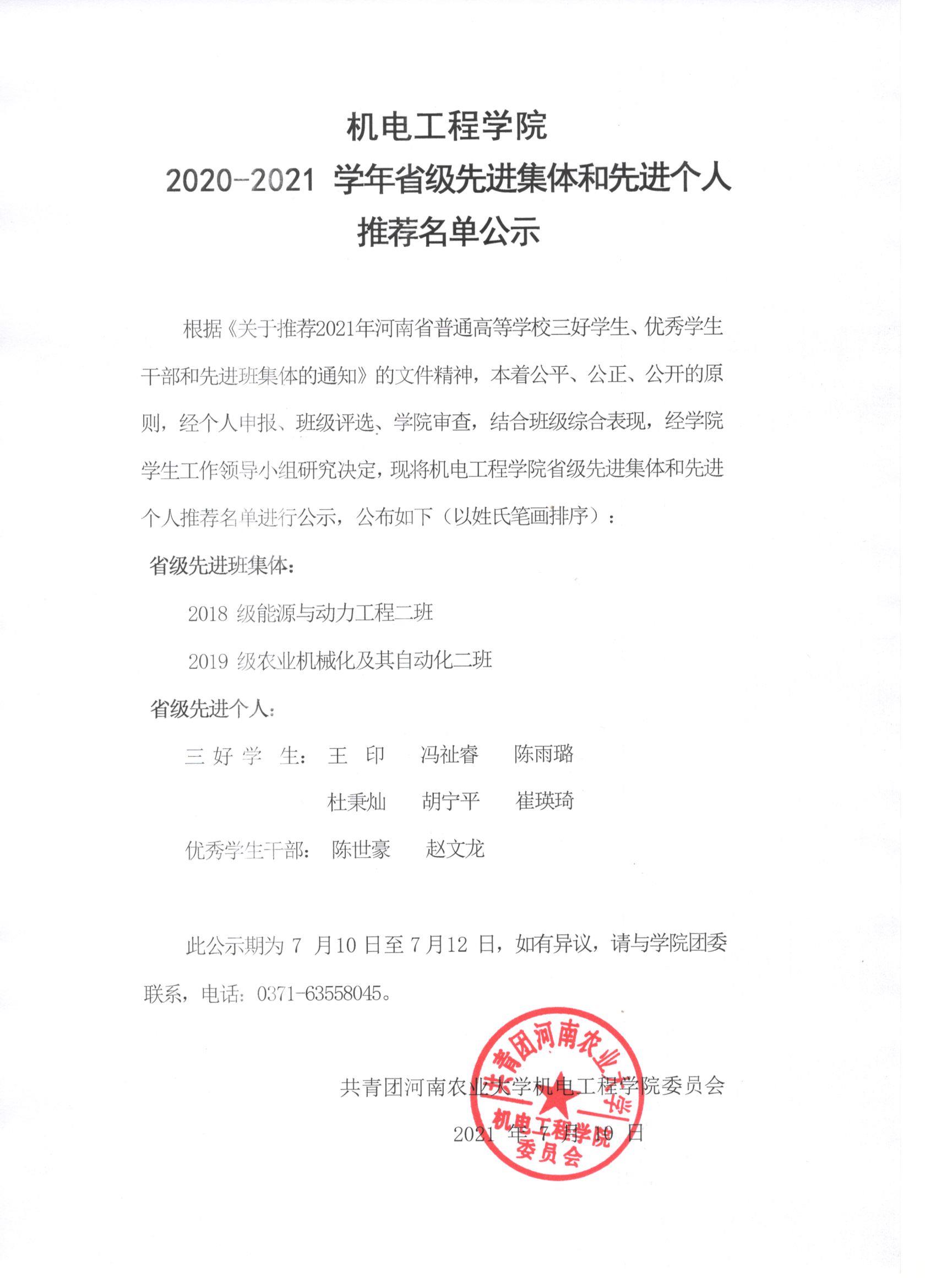 黄网 2020-2021学年省级先进集体和先进个人名单公示