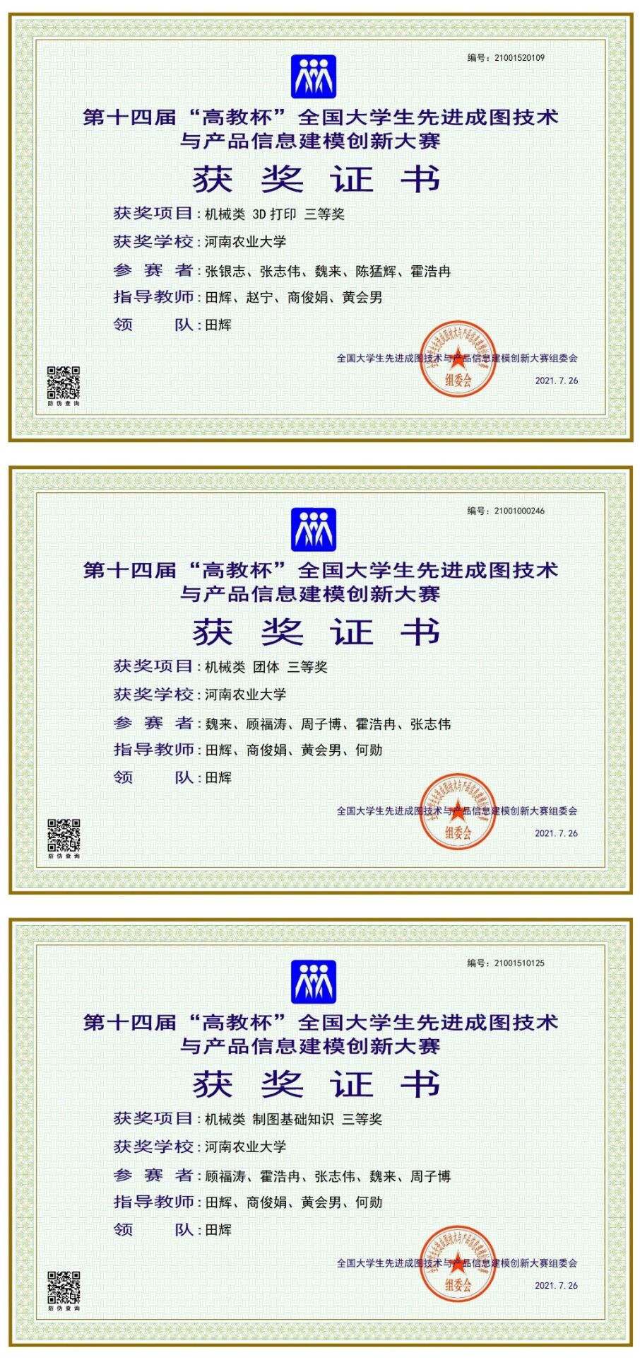 黄网在第十四届“高教杯”全国大学生先进成图技术与产品信息建模创新大赛中获得佳绩