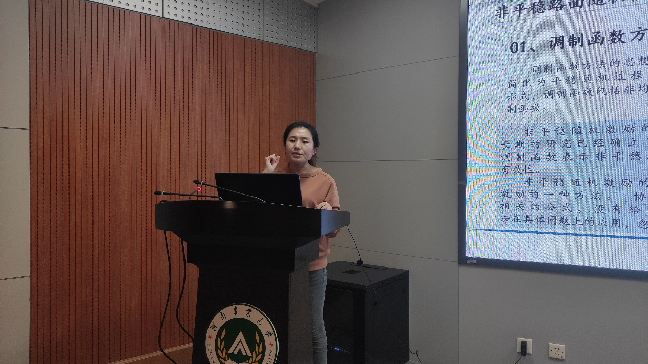 郭文翠博士在本次论坛作题为“轿车非平稳随机振动建模和求解方法”的讲座,分别讲解了汽车非平稳随机振动的含义及其研究的重要性;路面不平度和车轮路面随机激励的随机过程模型;轿车振动的单轮、平面和空间模型;非平稳随机振动响应量及其统计特性的求解方法;非平稳随机振动相应量及其统计特性的仿真。通过对研究对象建立理论模型,并对其进行求解与仿真,最终得出研究结论,为后续对轿车非平稳随机振动的研究提供了理论基础。