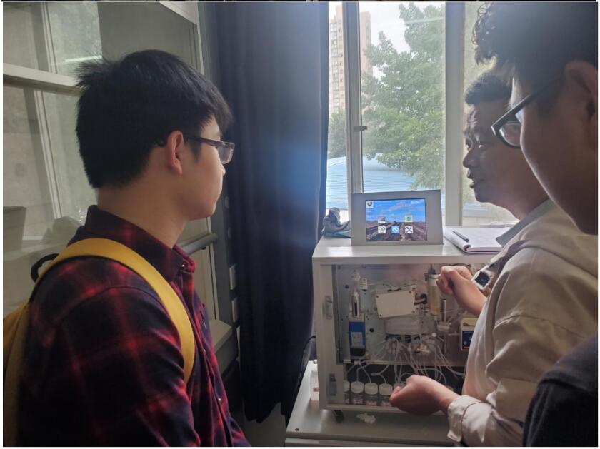 随后同学们来到河南省农业激光技术国际联合实验室,商俊娟老师、博士生张燕燕和硕士生胡一帆、李冬贤、苏睿、李灿、位文涛、李保磊等分别介绍和演示了“表面等离子共振生物传感器”、“激光诱导击穿光谱技术”,“激光表面增强拉曼光谱技术”和“农业面源氮磷污染检测技术及仪器”等实验。
