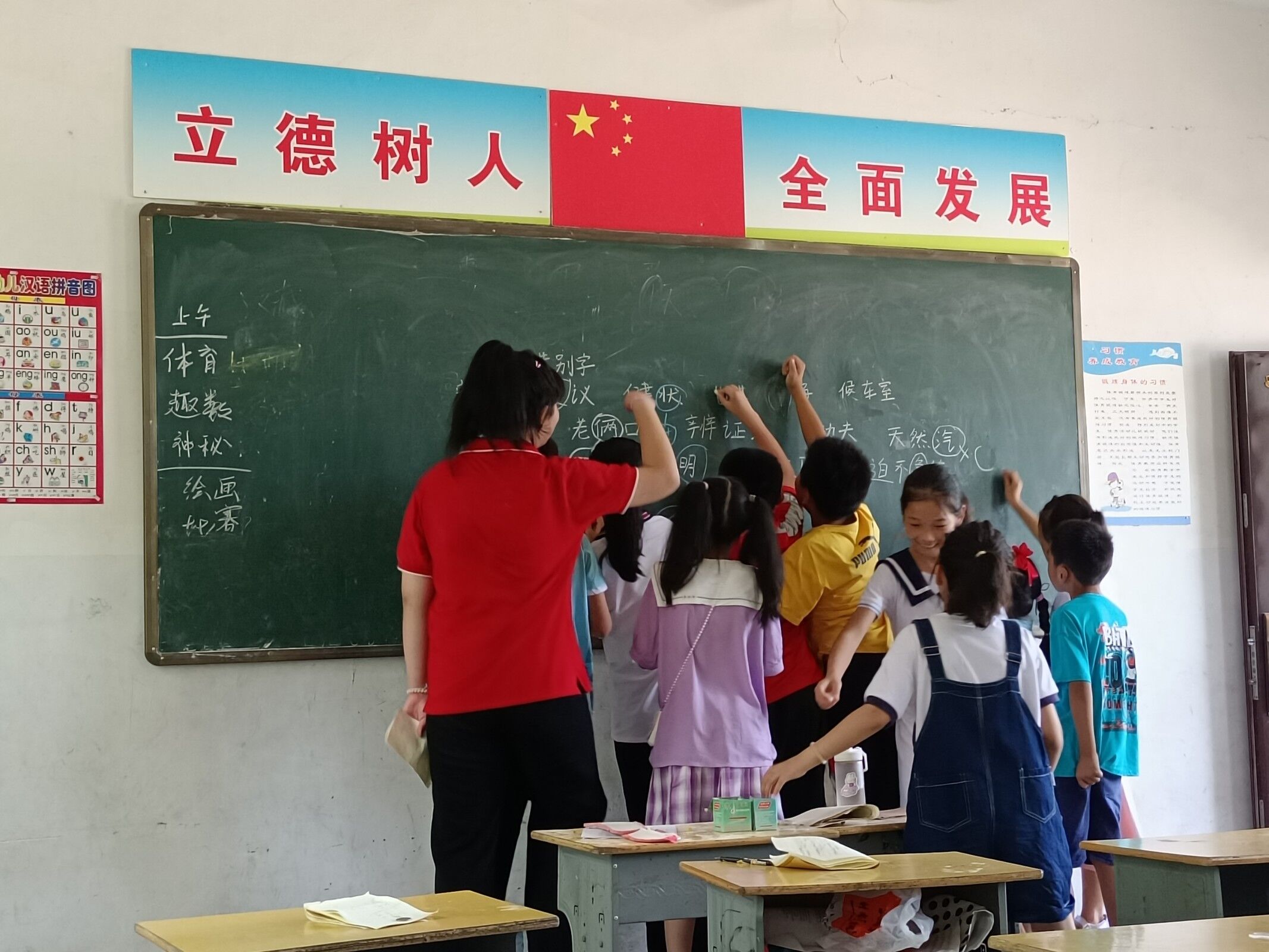 7月9日,实践队员抵达洪畈村并进村了解村内基本情况,为后期各组工作的顺利开展做好准备。随后支教组、调研组与文艺组分别开始进行宣传招生、调研考察、文艺演出等筹备工作。各组工作步入正轨,该团队支教课程设定有趣味语文、趣味数学、头脑风暴、华武扇、美术、音乐、历史人文课、传统文化知识、科普课等多项特色课程,致力于激发每位孩子的学习兴趣。当队员们看到孩子们开心的笑容以及带着求知欲望的眼神时,他们的内心感慨良多,认为支教带给孩子们的不仅仅是知识,更是能在他们心中播撒爱与希望的种子。