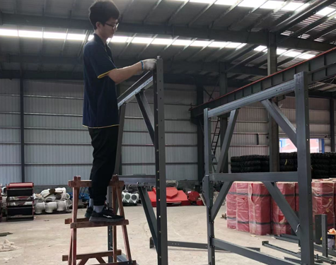 每一步焊接组装都是对生产经验与技能的熟练运用,也是对科研人员细心与坚持的考察。5月22日-7月4日,团队硕士研究生王妙林、徐磊鑫在博士研究生袁玲合的带领下,一行人来到荥阳中联收获机械有限公司进行为期一个多月的联合收获机脱粒系统相关课题试验台架搭建与研究。