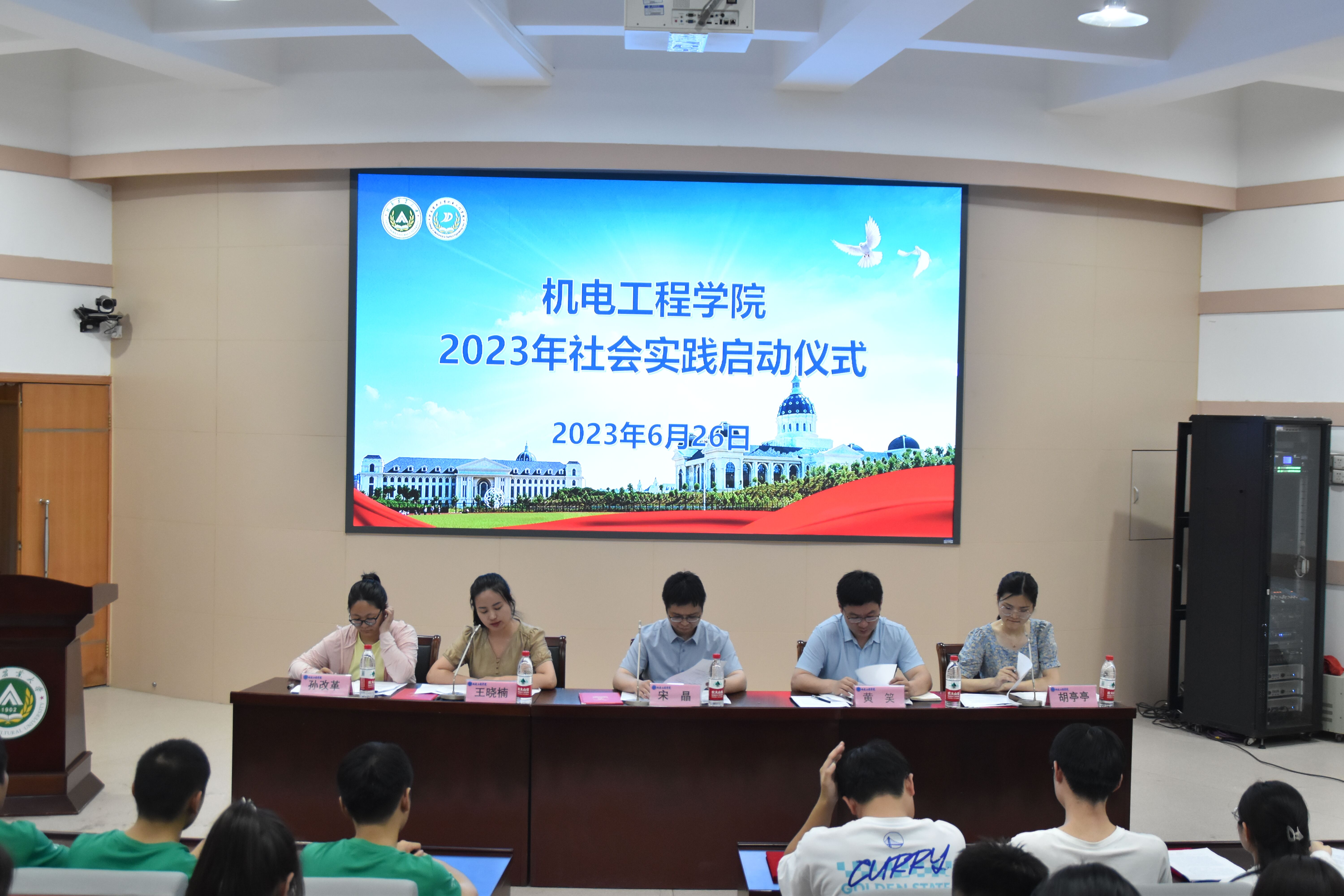 6月26日晚上,黄网于文化路校区300人报告厅举行社会实践启动仪式暨学生组织换届大会,黄网党委副书记宋晶,团委书记黄笑,团委副书记王晓楠、胡亭亭,年级辅导员孙改革出席本次会议。黄网学生组织全体成员,21、22级班委及社会实践团队代表参加本次会议。
