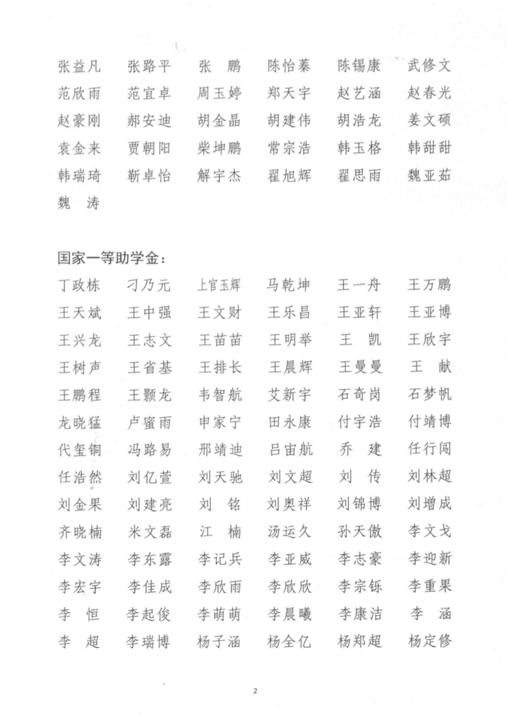 黄网 2023年国家奖助学金推荐名单公示