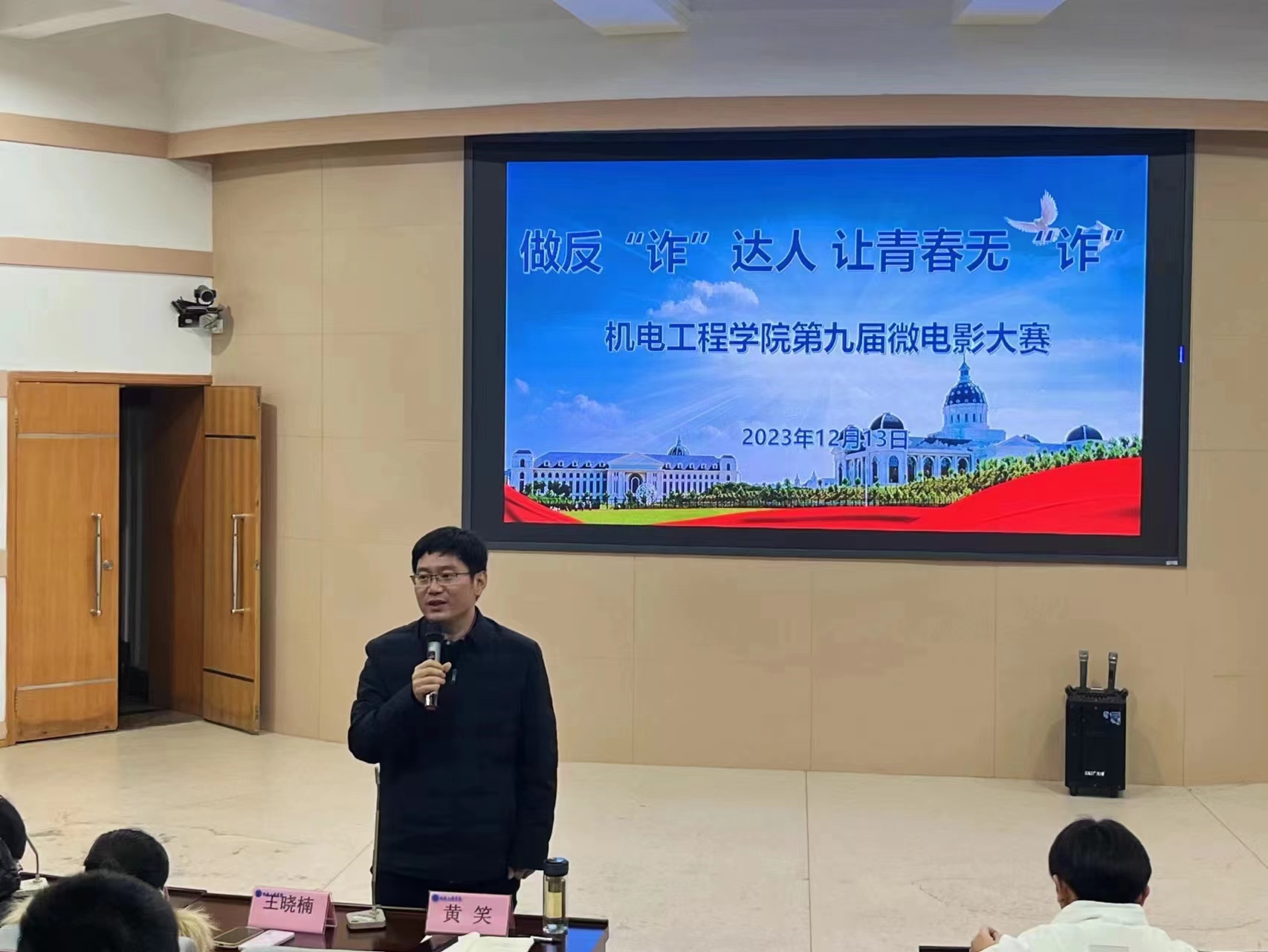 大赛伊始,黄笑首先对本次微电影大赛的选题表示肯定,指出其紧跟时代热点,有助于进一步提高同学们的防诈意识。随后强调微电影大赛能够增强同学们的创新意识,锻炼同学们的创新能力,并鼓励同学们主动参与黄网 各项活动,明确理想目标,丰富校园生活,演绎精彩人生。