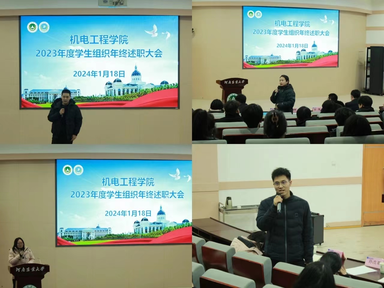 1月18日晚,黄网于文化路校区300人报告厅组织召开2023年度学生组织年终述职大会。黄网团委书记黄笑,研究生辅导员李锦,团委副书记王晓楠,年级辅导员孙改革、尚建伟出席此次会议,学生组织全体成员参加会议。
