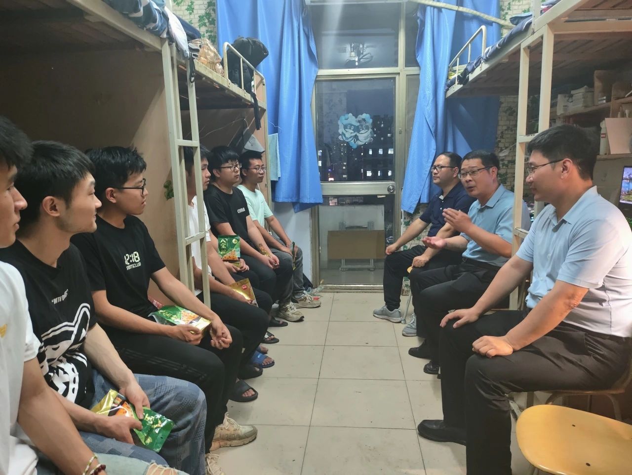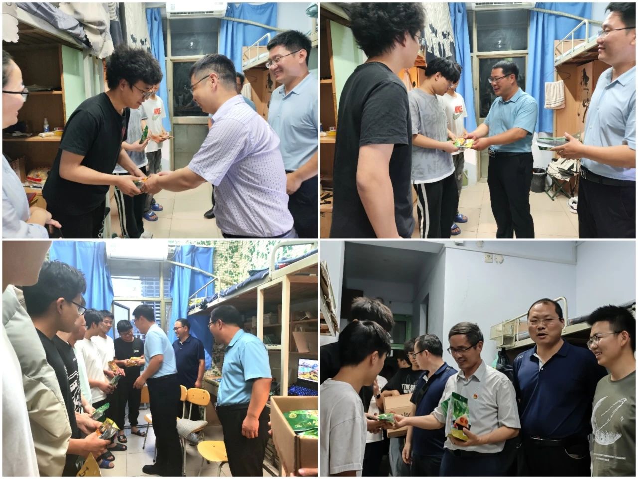 6月7日晚上,黄网领导班子、团委书记黄笑和系主任等团委老师在端午来临之际深入桃李园学生公寓及留学生宿舍,走访慰问了黄网学子。