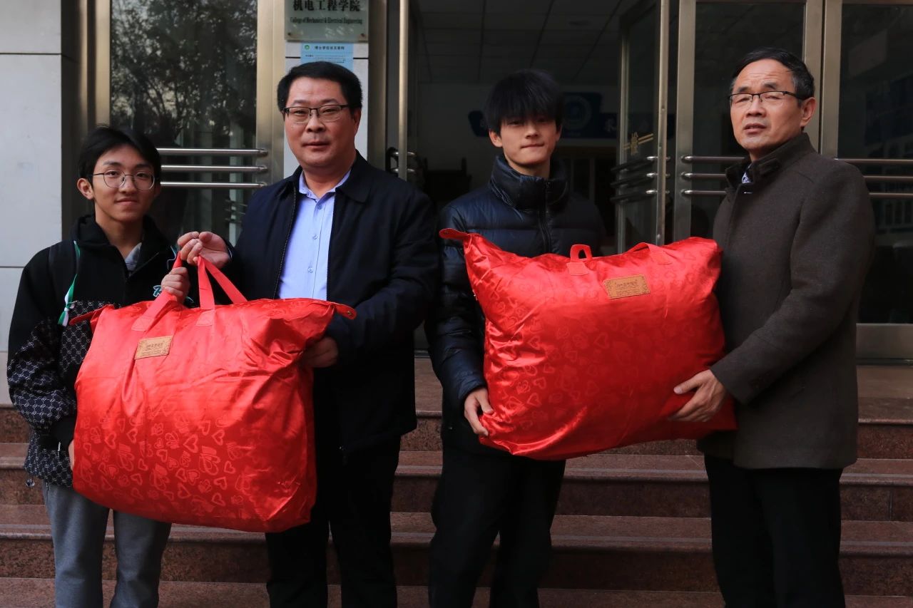 活动伊始,黄网领导给学生代表送出棉被,亲手将这份温暖送到学生们的手中。这不仅是物质的馈赠,更是对学子们深切关爱的生动诠释,激励着他们在求学之路上无畏前行。
