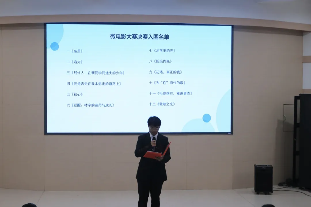 决赛现场,入围影片逐一展映。这些作品以心理为主题,从多个角度展开叙事,聚焦于学生自我认知、情绪管理、压力应对等核心议题。每一部微电影都如同一面镜子,映射出人们内心深处的情感波动,让观众在观影过程中产生了强烈的情感共鸣,深刻感受到了心理世界的复杂性和重要性。