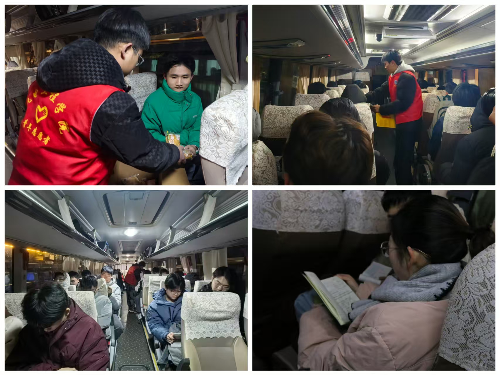 清晨5点,天色未明,寒风凛冽,爱心送考车辆已在文化路校区工程楼前整齐排列,等待驶向龙子湖校区考场。辅导员老师与志愿者们坚守在送考车辆前,无畏严寒,全身心投入紧张有序的送考筹备。考研学子们自信从容,依次排队上车,秩序井然。出发前,志愿者们耐心认真地提醒同学仔细检查证件、文具及考场信息,确保无任何遗漏,还特别鼓励同学们,要注重调整情绪,保证休息,以严谨认真的态度对待考试,以平稳的心态迎接挑战,全力以赴争取在考场上发挥出最佳水平,实现自己的考研梦想。