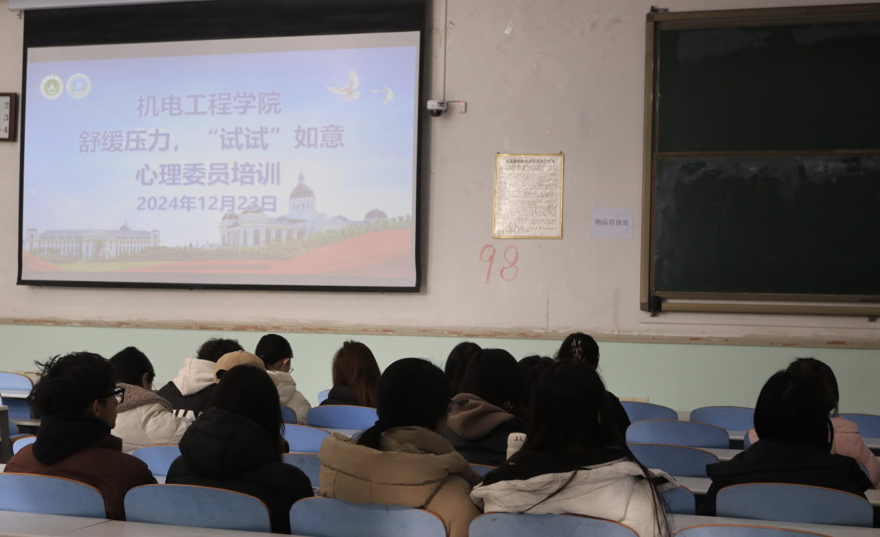 12月23日中午,黄网在文化路校区工程楼101教室举办“舒缓压力,‘试试’如意”心理委员培训。此次培训由年级辅导员孙改革主讲,黄网