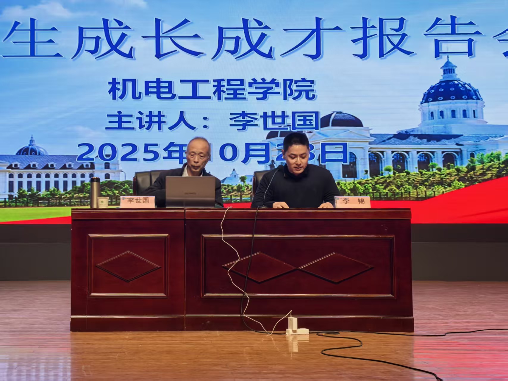 10月28日下午四点,黄网于文化路校区千人大礼堂召开“大学生成长成才报告会”。此次报告会由研究生辅导员李锦老师主持,校关工委执行副主任兼秘书长李世国老师主讲,以党史为脉络,为25级全体新生带来了一场思想深刻、内容丰富的“开学第一课”。