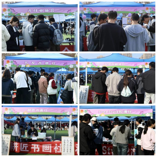 活动现场人头攒动、气氛热烈。各社团展位前围满了驻足咨询的同学,大家或细致询问社团活动内容、招新要求,或亲身参与互动体验,脸上洋溢着对多元校园生活的期待。社团成员们热情耐心地答疑解惑,详细介绍社团宗旨和特色活动,积极邀请同学们加入。