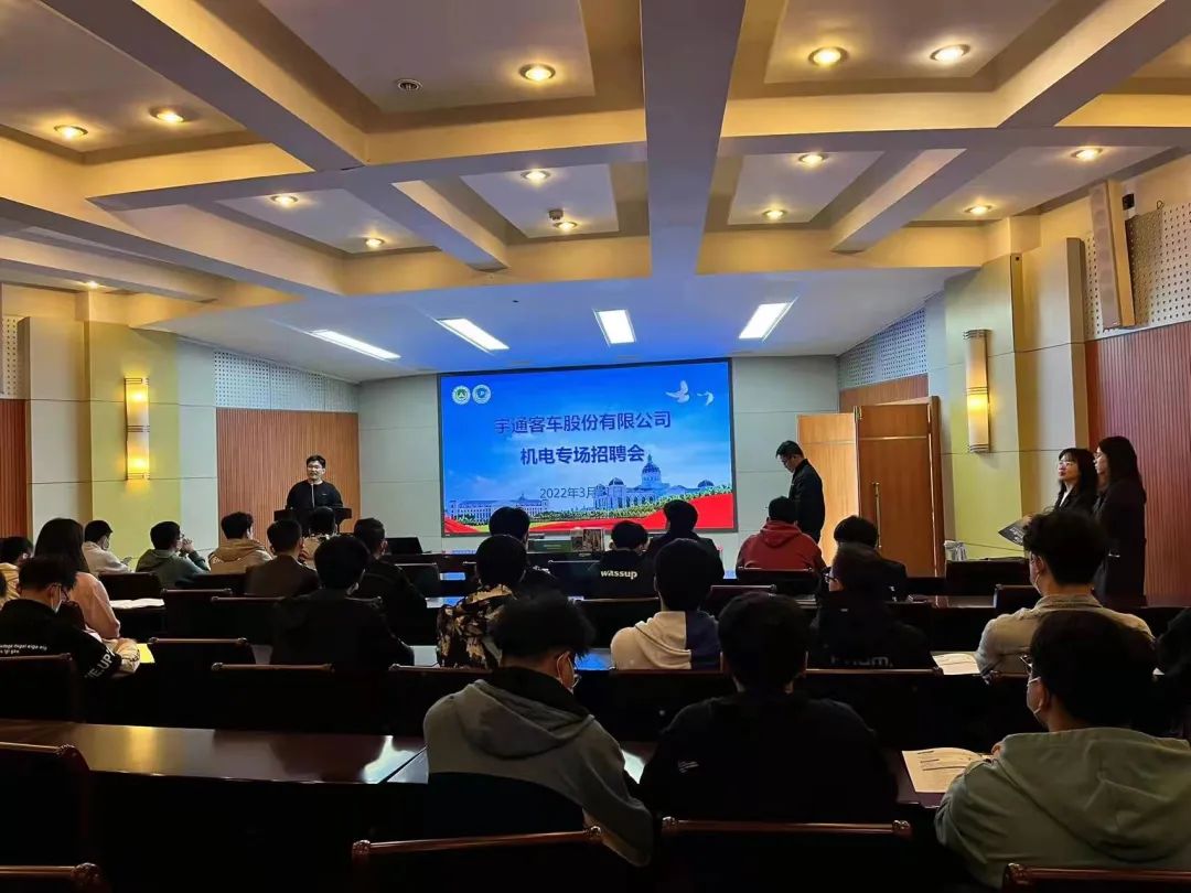 为高质量打通人才培养“最后一公里”,精准服务学生就业工作,3月11日下午,黄网在文化路校区100人报告厅举办宇通客车股份有限公司专场招聘会。