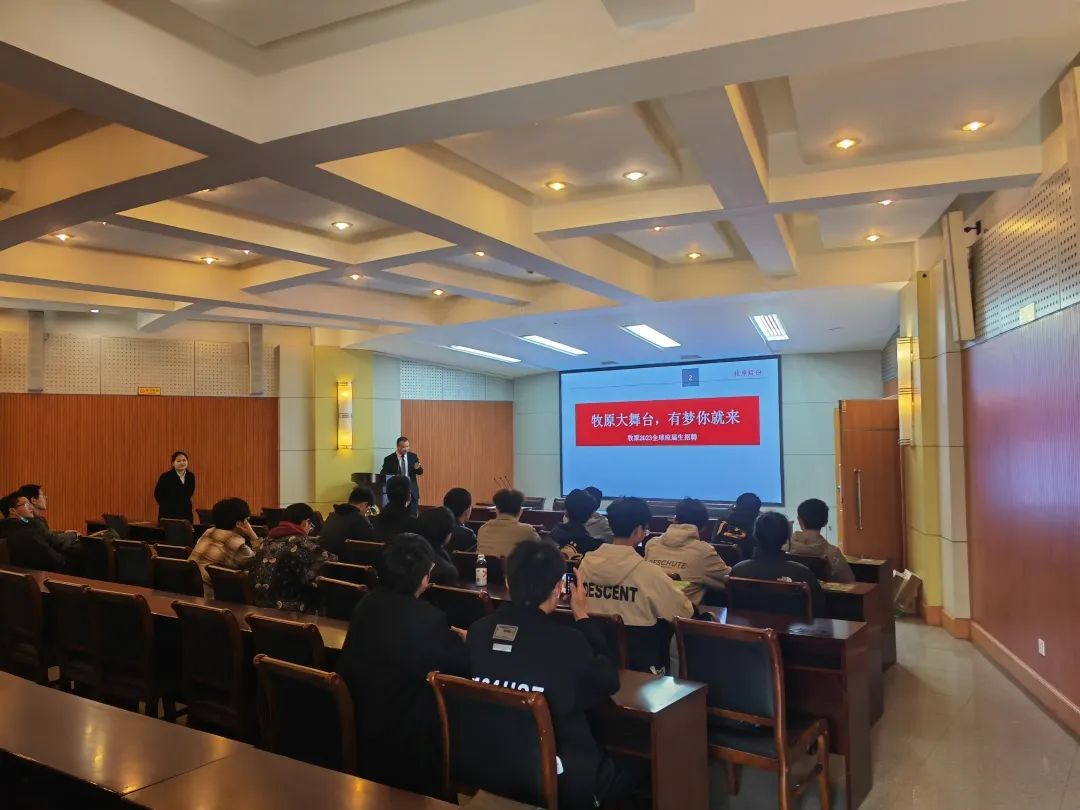3月22日下午,黄网于文化路校区100人报告厅举办牧原集团校园宣讲会。该公司招聘相关负责人及黄网部分毕业生参加会议。